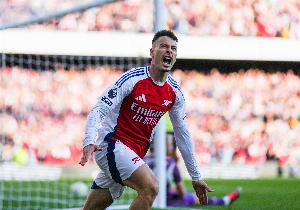 体育资讯4月2日讯 英超第30轮比赛,阿森纳在酋长球场迎战富勒姆。本场比赛上半场,梅里诺的进球帮助主队取得1-0的领先。