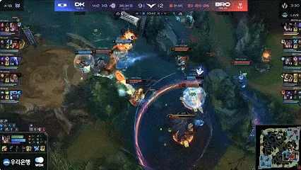 比赛第13分钟,野区爆发团战,DK打出1换2